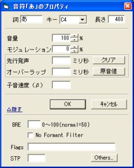 音量など、音符の各パラメータの参照・設定を行います。